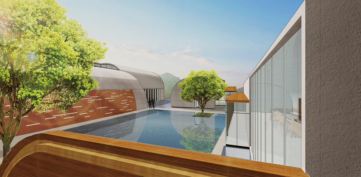 Changshou Lake Hotel is located on the east bank of Changshou Lake Scenic Area in Chongqing, surrounded by mountains and rivers and facing the endless lake view.The architects retains the yellow quake tree as a scenic spot, transforms the ruined structure on the southwest side into an outdoor swimming pool, and recycles building demolition materials to make the hotel more local and rustic. Based on the landform and the lake view, the hotel was designed with a terrace solution, and opened to form the inner courtyard to introduce light and wind, which not only gains a better fit with the site’s topography, but alos riches lighting effects and lake view area.